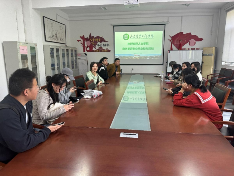 近日,多位商务英语本科专业毕业校友集体返校,参加了商务英语教研室组织的毕业校友座谈会。人文学院领导班子出席并亲切接见了毕业校友,商务英语教研室教师代表参加了座谈会。