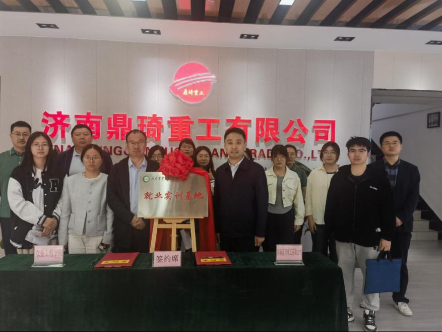 走访期间,人文学院领导详细介绍了学院的办学方向、办学理念以及毕业生的就业情况。济南鼎琦重工有限公司负责人介绍了公司运营模式、企业文化、人才需求及福利待遇保障等相关情况。通过本次沟通洽谈,双方签署了共建协议并就实习基地进行揭牌。