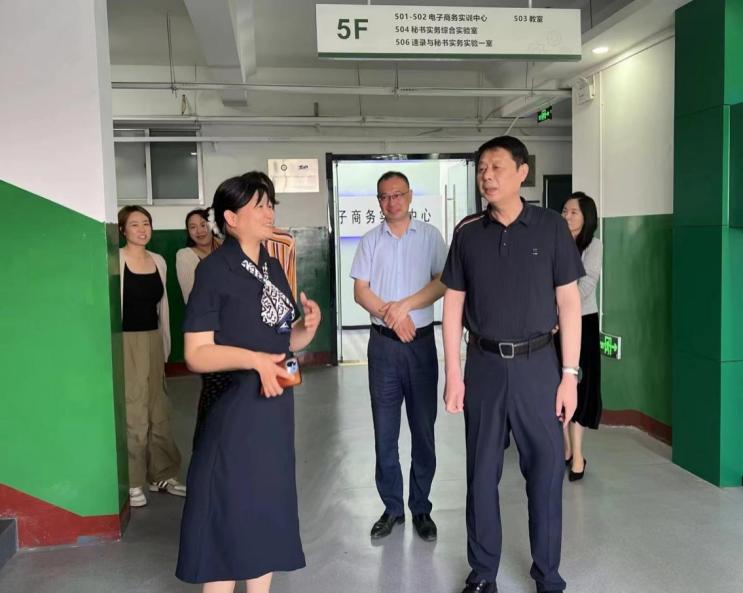 近日,校党委书记张鸿波深入人文学院电商直播实训室调研指导。党委(学院)办公室主任陈浩、人文学院领导班子成员及相关教师陪同调研。