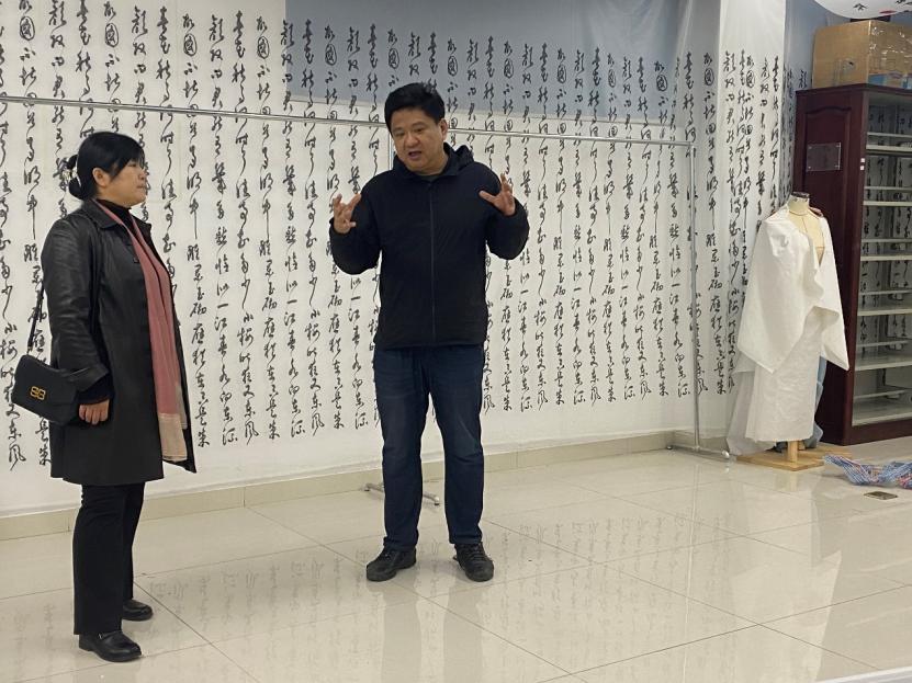 宋红闯主任首先参观了人文学院产业学院----数字文化创意学院的电商直播室以及汉服体验馆。参观过程中,高千秋院长向宋红闯主任详细介绍了电商直播室运营情况和汉服体验馆的设计布局,以及汉服社的日常活动和未来规划,宋主任结合工作经验,就校企合作、创新创业等为人文学院的未来发展提供了多种新思路。