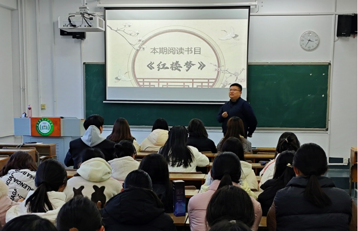 活动伊始,主持人任鑫垚对《红楼梦》进行了简要介绍,阐述了其在中国文学史上的重要地位及广泛影响力,为后续的深入探讨奠定了基础。随后,明德书画社指导老师冠忆非结合自己多年的研究经验,深入浅出地讲解了书中主要人物的性格特点、命运走向以及背后所蕴含的深刻文化内涵。他指出,《红楼梦》是一部反映封建社会兴衰、人性善恶以及文化传承的百科全书,通过冠老师的解读与分析,同学们对《红楼梦》这部经典名著有了更为清晰和深刻的认识。