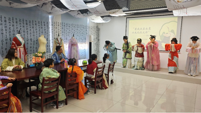 为弘扬中华优秀传统文化,铸牢中华民族共同体意识,促进高校与社区之间的交流与合作,12月28日上午,新园社区的小朋友们和家长走进人文学院传统文化体验馆,感受了中华传统服饰的魅力与书法艺术的博大精深。