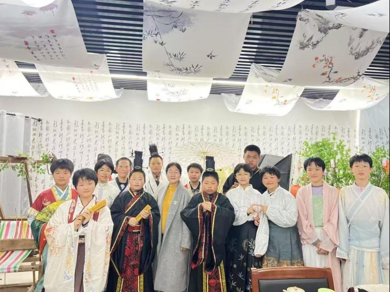 近日,历城区双语实验学校初中部学生来我院开展了“春日汉服韵 学府墨香飘”传统文化研学活动,近距离接触和体验了中华优秀传统文化的独特魅力,东风街道新园社区参加了本次活动。