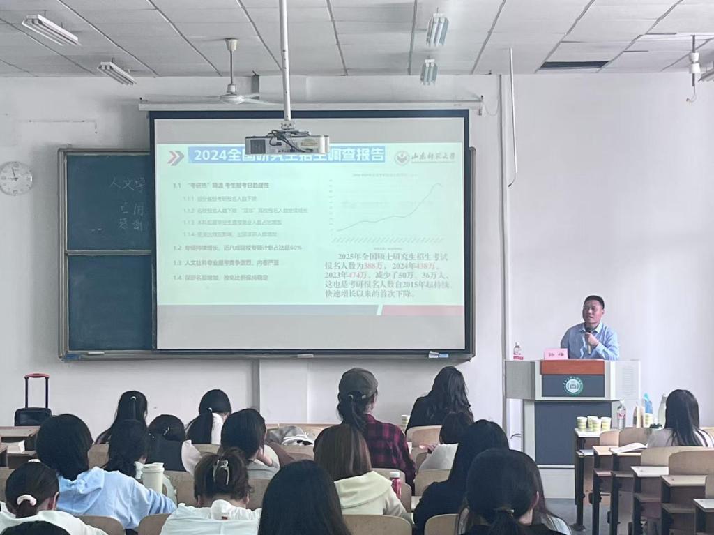 本次报告会为我院学子深入分析了研究生考试政策,积极助力学子们精准掌握考研最新动态,科学制定学习计划和报考策略,为学生未来发展提供了有力支持。