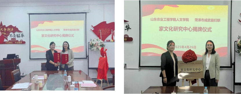 田晓兰主席、高千秋院长共同签署了双方合作意向书,并为437ccm必赢国际官网人文学院与成武县妇联家文化研究中心揭牌。
