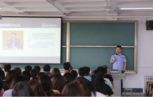 讲座主要围绕维护网络空间安全、防范电信网络诈骗、快速止付、个人信息保护以及预防校园欺凌展开。首先,田警官介绍了常发生在高校学生身上的网络聊天诈骗、网络兼职诈骗、网络贷款类诈骗、网购退款类诈骗等真实案例,讲解了骗子常见的伎俩和手段,向学生分析事故发生的主要原因。其次,田警官针对案件向同学们介绍了几种在面对紧急情况时快速止付的方法,有效防止诈骗行为发生的同时将个人财产损失降到最低。最后,田警官告诫同学们在面对校园霸凌时应冷静理智,学会运用法律的武器坚决抵制校园霸凌现象。他指出,大学生安全意识较弱,缺乏相关防护知识与技能,建议学生们在生活中一定要仔细观察、防伪防骗,增强安全防范意识,保障人身财产安全。
