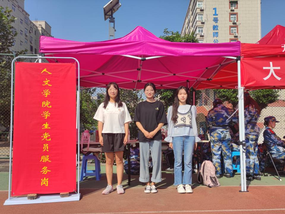 军训无疑是大学生活的一抹亮色,不仅可以强身健体,而且可以丰富人生经历,训练时的高标准、严要求、有组织、有纪律,使得大家形成了积极乐观的人生态度,在以后的学习和生活中能够努力上进,自我约束。同时,炎热的天气、刚来学校的懵懂也为新生带了困扰。因此,为新生提供帮助和服务也是必不可少的,人文系学院学生党员志愿服务岗主动积极帮助新生解决问题,为同学们献爱心成为新生与学院的纽带,建立了二者之间更加紧密的联系,体现出了人文精神和人文关怀。