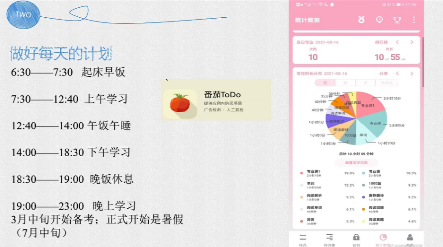 首先,王馨雨同学介绍了自己备考的基本情况,分别从公共课和专业课两个方面分享了需要准备的学习科目、时间规划和推荐书籍,并叮嘱同学们放松心态、认真备考。随后,任丹凤、王婧宇等两位同学倡导同学们要为自己创造学习环境,提高自己的学习效率,劳逸结合,同时她们也强调重复知识和输出知识的重要性,对同学们很有借鉴意义。最后,牟志玉、张宁和刘家安等三位同学提出要找到适合自己的学习方法,他们认为以乐观的心态备考是制胜的法宝。