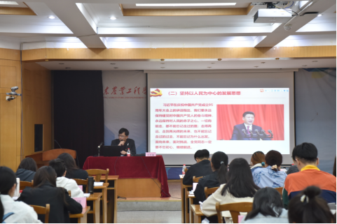 刘效楠老师在讲座中讲述了共产党人的初心和使命,强调共产党坚持以人民为中心的发展理念,凡事以“民”为本的原则。他呼吁同学们争做敢担当、有作为的时代青年,以实际行动践行爱国主义精神。他的生动讲授打动了每一位同学,会场频频爆发出掌声。讲座之后,各位入党积极分子围绕爱国、爱党、爱校以及如何做新时代青年展开讨论,进一步明晰时代新人的含义。