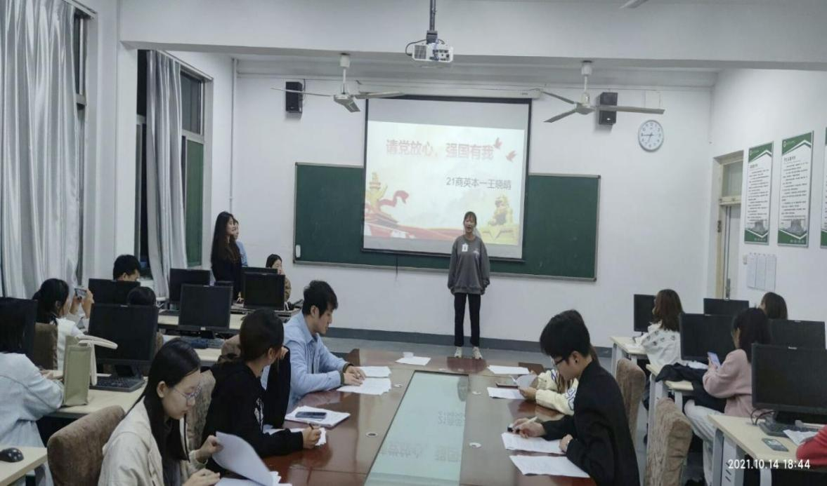 参加比赛的同学轮流上台演讲,热情饱满话语真挚,表达出了对祖国母亲深沉的爱,比赛中同学们说到:“一百载风雨兼程,奏响盛世华章,七十二载同舟共济,共显无尚荣光,作为中华儿女,我们坚定信仰,我们无比自豪”。提到我们作为新时代青年,要努力学习奋发向上,在做好自己本职工作的同时,为祖国和社会贡献出自己的一份力量。