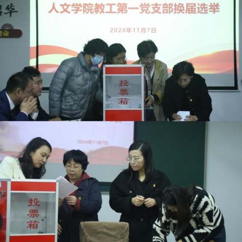 2024年11月7日下午,人文学院教工第一、第二党支部分别于3号教学楼202室和504室召开换届选举大会。本次大会回顾了上届党支部工作成果,选举产生新一届党支部委员会,为学院党建工作注入新活力。