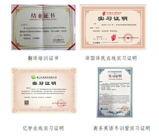 近年来,商务英语专业学生利用周末和寒暑假积极报名参加各种培训、讲座和在线实习活动,不断提升专业素质,明确职业发展规划,收获满满。
