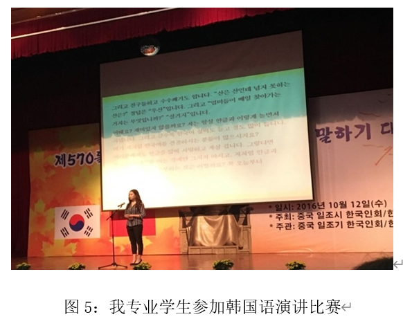 另外,学生在校期间可以参加各种韩国语相关赛事,以赛促学,激发学生的学习兴趣,如韩国语演讲大赛和韩国语歌曲大赛。同时,我们还举办多彩的课余活动,丰富学生的课余生活,为学生的校园生活添彩,如韩国文化体验活动、专业歌曲大赛、中韩历史文化知识竞猜、中韩学生联谊等。