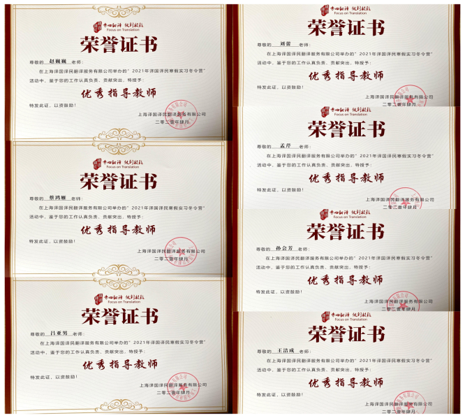 本次活动共有454名学生参与,经过为期一个月的在线实习,其中348名学生获得由“上海译国译民翻译服务有限公司”颁发的实习证明。李凯悦、邹丹、李靖茹等7位同学因表现优秀,被评为“优秀实习生”,我院15位老师被评为优秀指导教师。同时,人文学院获得了该公司授予的“2020年度校企合作模范院校”牌匾。