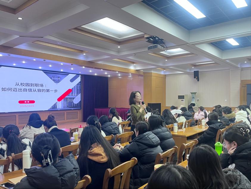 为帮助2026届秘书学专业毕业生平稳完成校园到职场的过渡,迈好职业发展第一步,12月29日上午,人文学院特举办秘书学专业综合学年实践系列活动,秘书学专业带头人田芸教授以“职场礼仪的关键是尊重与自律,是学子从校园迈向职场的重要通行证”为核心主旨,为毕业生送上实用职场礼仪指南。