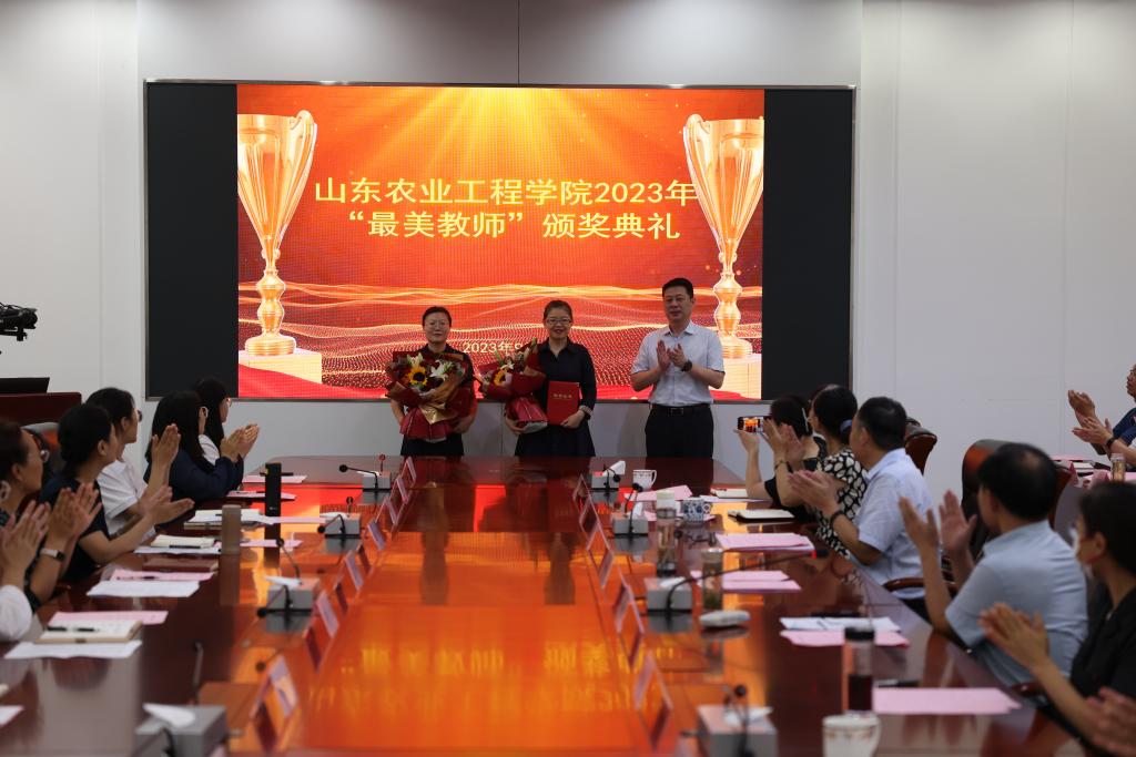 会上,张业赏宣读学校关于表彰2022-2023学年最美教师的决定,张鸿波为获得“最美教师”称号的教师颁发荣誉证书。