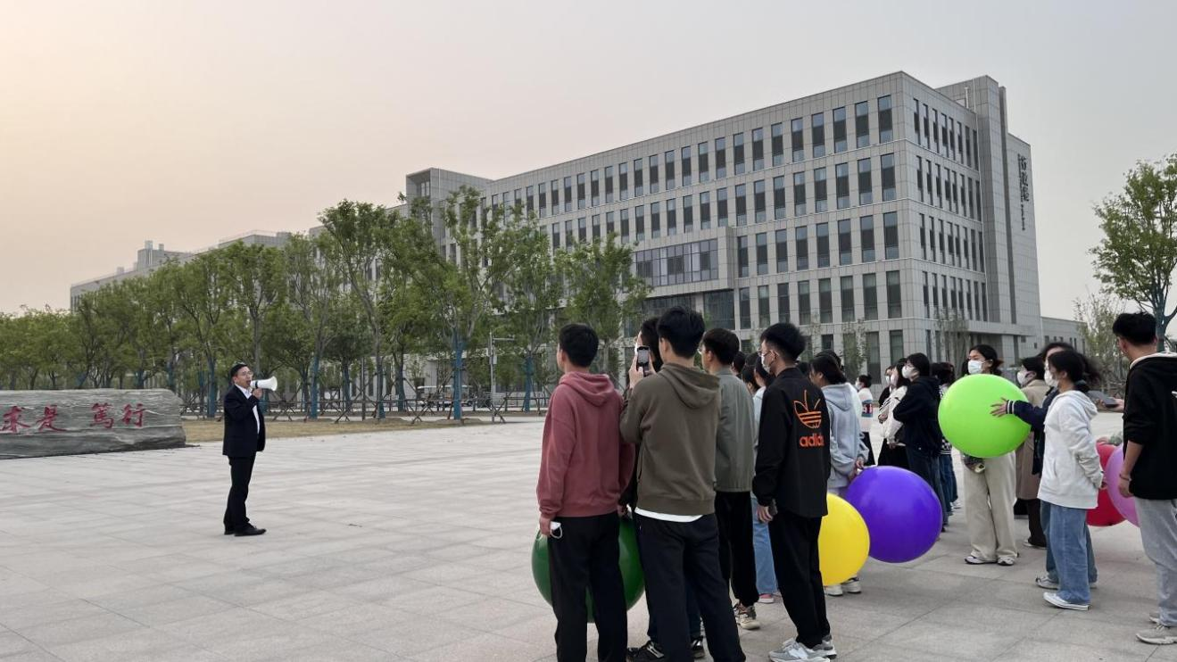图1:把课堂搬到校园中,向同学们讲授“大学校训”和