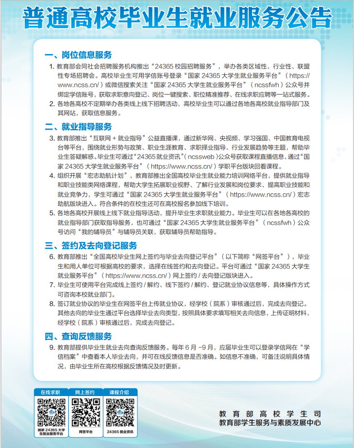 普通高校毕业生就业服务公告