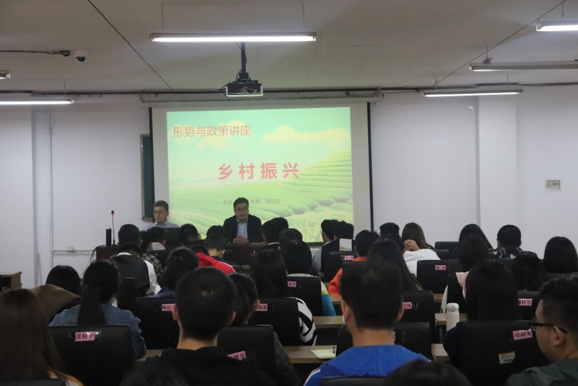 张校长结合自身多年工作经验和实地调研结果,为大家上了一堂生动而又深刻的形势与政策课,让学生们了解到乡村振兴对中国发展的重要性和必要性。