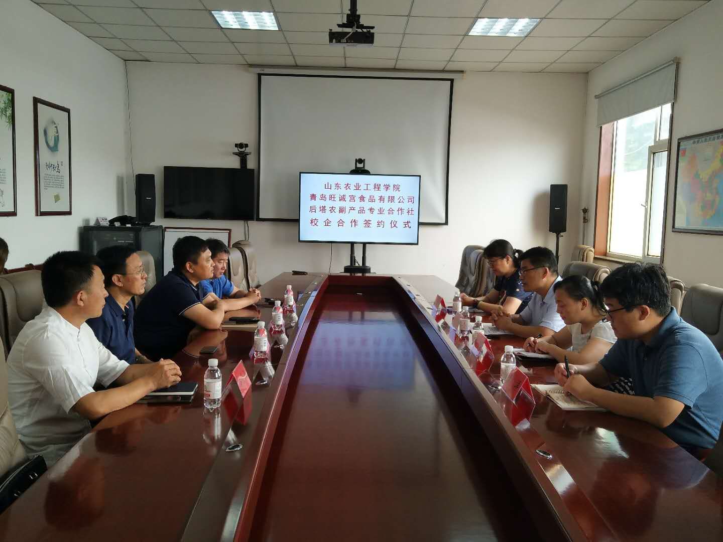 7月13日上午,我院于克学院长、姚文华副教授、于辉副教授及秦洋博士赴青岛莱西与青岛旺诚宫食品有限公司、后塔农副产品专业合作社就校企合作进行商谈,并召开签约会议。