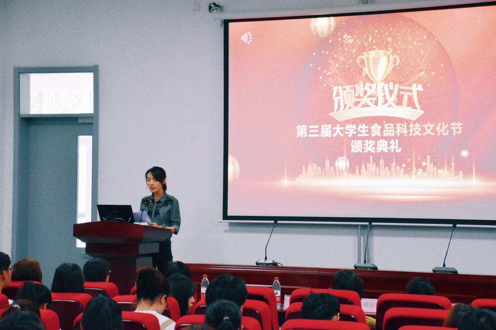 7月1日下午,我院第三届大学生食品科技文化节颁奖典礼在理工西楼B103报告厅隆重举行。校团委教师兼职副书记董小靖,我院副院长于洋、团总支书记王甜甜、教师郝征红、陈庆敏等出席典礼并为同学颁奖。于克学院长、许武强书记通过视频对食品科技文化节的圆满落幕表示祝贺。