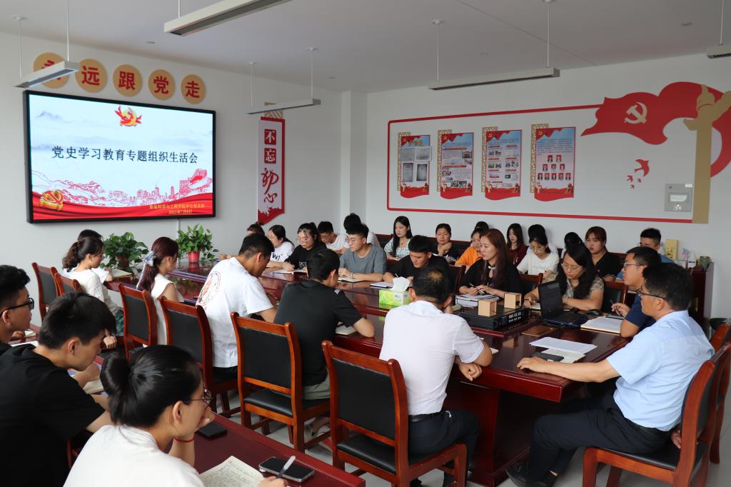 我院学生党支部于2021年7月8日中午在淄博校区理工西楼B213室召开了党史学习教育专题组织生活会。会议邀请我院党总支副书记、院长于克学出席,学生党支部书记李存鑫主持会议。