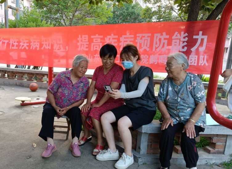 8月18日,我院鹤鸣生物社会实践服务队走进临沂市沂水县正阳路后小河社区为小区居民进行健康知识普及服务。