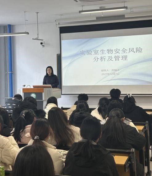 2023年12月7日,我院副教授井瑞洁在淄博校区理工西楼B208为我院师生作了题为“实验室生物安全风险分析及管理”的学术报告。