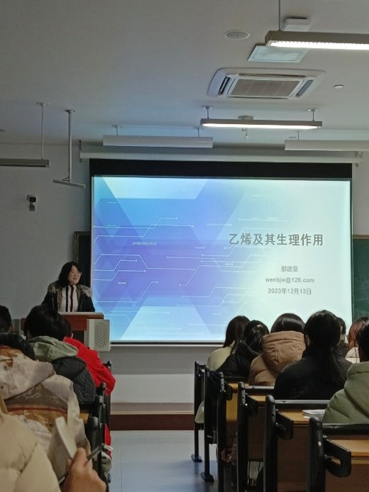 2023年12月13日,我院副教授部建雯在淄博校区理工西楼B208为我院师生作了题为“乙烯及其生理作用”的学术报告。