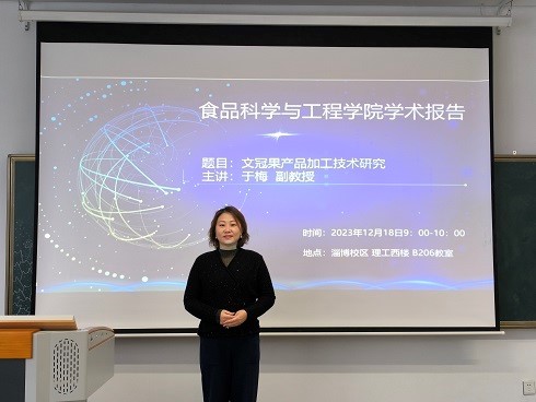 2023年12月18日,我院副教授于梅在淄博校区理工西楼B206为我院师生作了题为“文冠果产品加工技术研究”的学术报告。