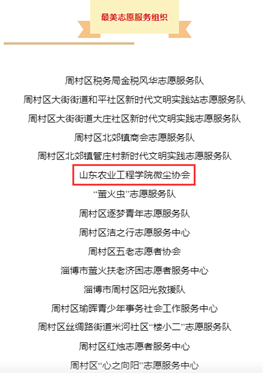 据悉,本次活动由周村区精神文明建设委员会组织发起,中共周村区委宣传部、周村区关工委、区民政局、共青团周村区委等部门联合评选,我院微尘协会是周村区高校唯一获评学生志愿服务组织。下一步,我院将继续响应驻地号召,开展系列暖心志愿服务活动,进一步弘扬志愿服务精神,为新时代新征程凝心聚力。