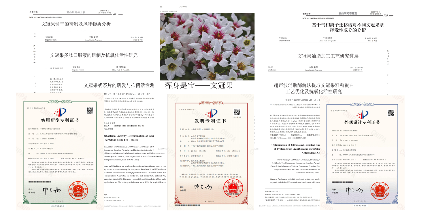 文冠果大学生创新创业团队在于梅老师的指导下,致力于文冠果综合加工利用,在创新创业比赛中屡获佳绩。团队荣获“中国国际大学生创新大赛”、“山东省大学生科技创新大赛”、“‘学创杯’全国大学生创业综合模拟大赛”等国家级、省级奖项20余项;完成国家级大学生创新创业训练计划项目1项;申请并授权国家专利5项;发表学术论文10余篇。
