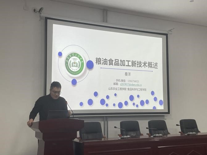 2024年11月28日,我院秦洋博士在淄博校区理工西楼B103为我院师生作了题为“粮油食品加工新技术概述”的学术报告。