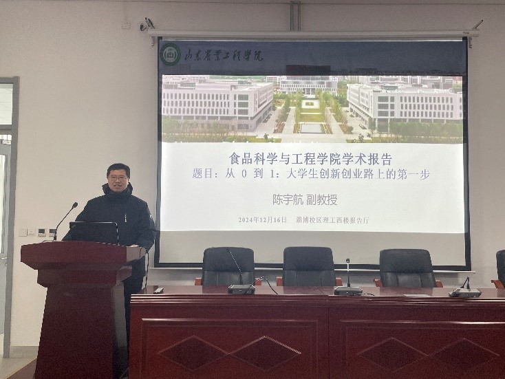 2024年12月16日,我院陈宇航教授在淄博校区理工西楼B103为我院师生作了题为“从0到1:大学生创新创业路上的第一步”的学术报告。