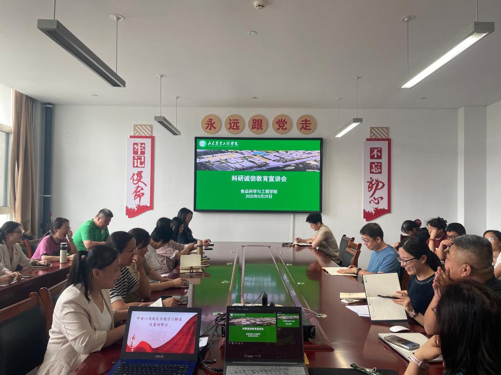 2025年5月29日,我院全体教职工在淄博校区理工西楼B213参加了以“科研诚信”为主题的教育宣讲会,会议由学院副院长陈庆敏主持。