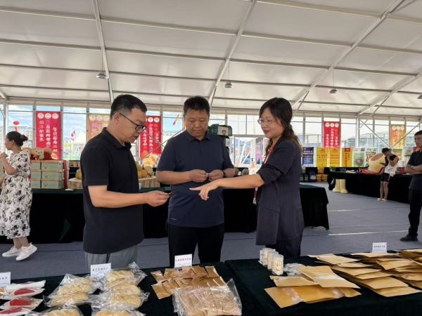 开幕式上,我院教师团队展示了与额济纳旗共同开发的蜜瓜干、蜜瓜奶粉、蜜瓜欧包、蜜瓜减税面包等蜜瓜产品,受到参会人员的喜爱。