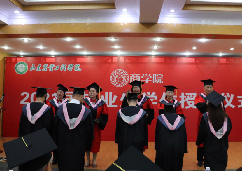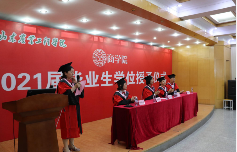 6月24日下午,437ccm必赢国际官网商学院2021年毕业生学位授予仪式在济南五楼多功能厅隆重举行。商学院院长王苹香、党总支书记刘相礼、学位评定委员会商学院分委员会成员、教研室主任、全体毕业生参加学位授予仪式,祝贺商学院全体毕业生圆满完成学业,开启人生新旅程。仪式由副院长张芳丽主持。