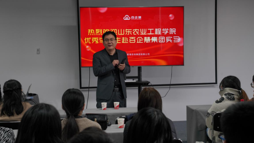 百企慧企业咨询管理集团董事长单宝强、人力资源部部长侯现燕热情接待了我院的老师和同学们。此次实习的总负责人赵瑞婧带领同学们参观了百企慧集团的办公区域,并对百企慧的业务范围、企业文化进行了详细的讲解,使同学们对整个百企慧集团有了比较直观的感受。