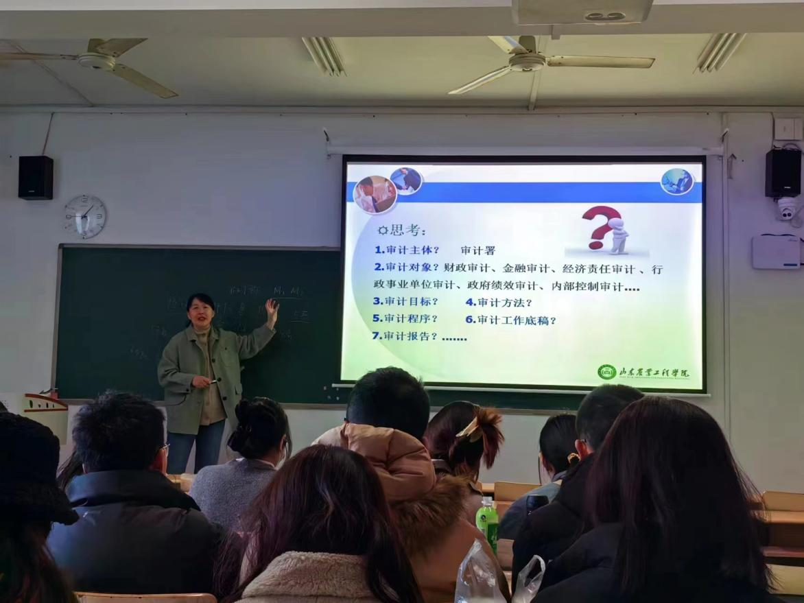 利用学生分组讨论的空档,李进京校长认真询问了任课班级学生年级、结构、知识储备、认知层次,审计学专业发展状况、专业社会需求、审计人才市场,以及教师开展科研及专业服务社会等情况。下课后,校长肯定了任课老师的教学设计及教学风格,风趣地对老师和学生们说:“我是经济责任审计的审计对象”,课堂上传来欢快的笑声。