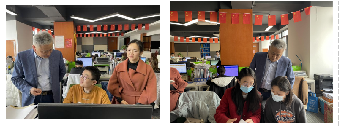 随后到访教师在李青带领下看望了公司本部实习的学生,详细询问了学生的实习状况,认真听取了同学们的实习体会,对实习学生的实习内容、实习收获、实习过程中遇到的困难和问题等方面情况进行了深入了解。