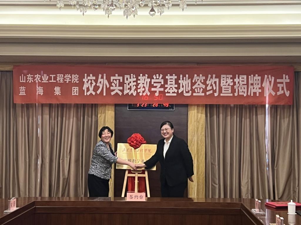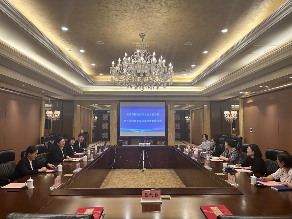 一行人员参观了蓝海嘉厨食品有限公司和蓝海逸园生态基地,对蓝海“美食+美居”连锁酒店差异化发展新模式和“双轮驱动,一二三产协调发展”的产业布局有了详细了解,为日后的实习与就业合作打下坚实基础。郑华美表示,通过深入了解,学校与蓝海集团有很多可以合作的领域,下一步要进一步拓展与蓝海集团的全面合作。商学院院长连华和蓝海集团酒店公司公司总经理助理姜燕代表校企双方签订了校企合作协议,郑华美和肖慧杰共同为校外实践教学基地揭牌。学院将以此为契机,进一步深化产教融合,将学院优势与企业优势相结合,实现优势互补、资源共享,携手共赢。