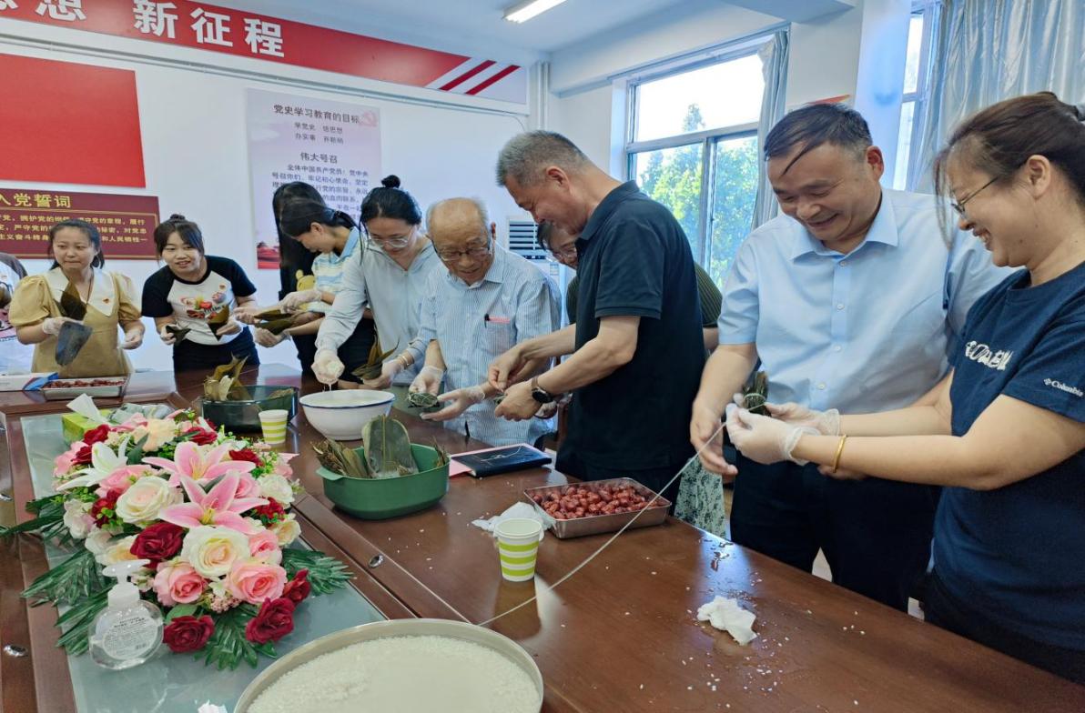 会后,退休老干部与在场师生共同体验了一把传统节日活动——包粽子,撸起袖子,捋粽叶、盛米、置枣、裹粽子,现场其乐融融,欢声笑语,忙得不亦乐乎。新老长幼之间,不仅仅是手法的教授和交流,更是山工院精神的传承。与会青年教师和学生在体验传统文化的同时,更加感受到了老一辈教育工作者对年轻一代人的关心和期望,一致表示在今后的工作学习中,要将老一辈山工院人不怕吃苦、敢于奋斗的精神传承下去,在新征程中踔厉奋发,勇毅前行。