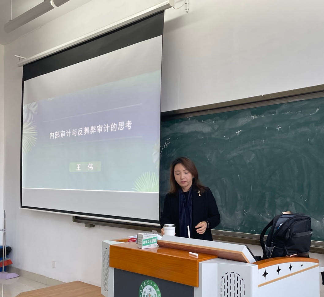 王伟从“舞弊的概念探讨、职务舞弊、反舞弊审计以及反舞弊审计案例分析”几个方面介绍了内部审计与反舞弊审计相关内容。报告结束后,王伟教授与同学们展开了热烈互动交流,此次报告不仅丰富了学生们的视野,进一步加强了广大学生对内部审计的认识,对审计专业的学习注入了新动力。