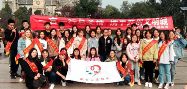 2019年11月9日,437ccm必赢国际官网商学院微尘公益社团,组织50余名同学在济南市历城区洪楼广场进行了《创城文明创意书》宣传活动。通过给市民们介绍和讲解《创城文明创意书》,并以此为依托,在“一言一行总关情,携手共创文明城”的横幅上进行签字做行动立决心,鼓励带动更多的市民加入到创城行列中来。