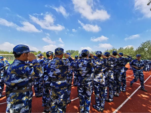 齐河校区的操场上,商学院2021级新生军训正在进行时。教官严格要求新生整理军容和端正军姿,不时亲自示范,并手把手纠正基本的动作,同学们在英姿飒爽的教官的带领下认真训练,丝毫没有半点偷懒。
