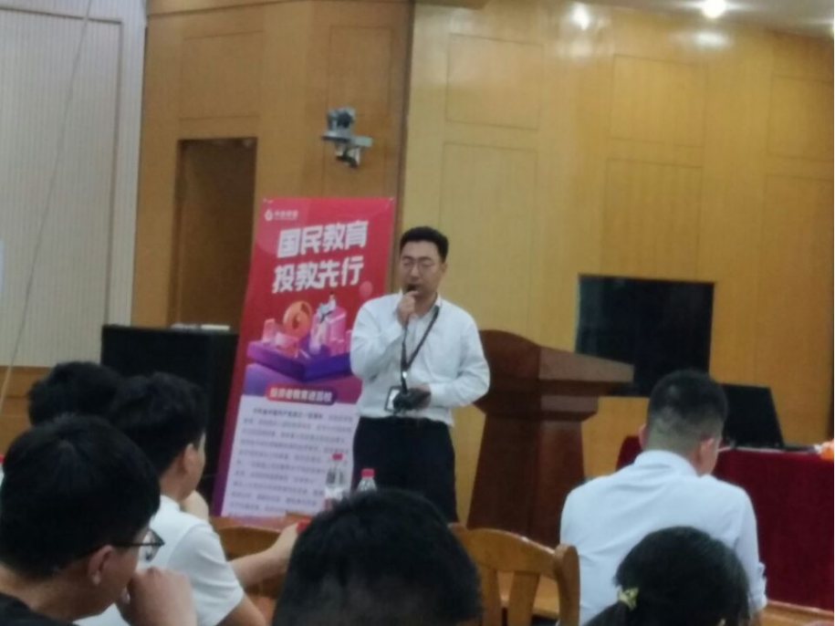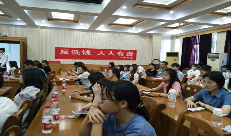 今年上半年,商学院邀请中金财富总部投资顾问党支部书记赖勇全同志及其率领的投资顾问专家团队,来我院反洗钱防诈骗教育活动。