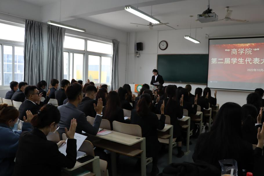 为深入学习贯彻习近平总书记重要讲话精神,以实际行动迎接党的二十大胜利召开,商学院于2022年10月6日在齐河校区2教425教室召开了商学院第二届学生代表大会。