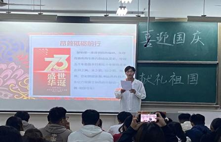 金秋十月,恰逢第73个国庆节,为继续弘扬伟大的民族精神,加强学生的爱国情怀。商学院学生于2022年10月13日和14日晚开展了以“喜迎国庆,献礼祖国”为主题的演讲比赛。在此次演讲过程中,商学院的同学们纷纷用自己的方式为祖国加油喝彩,表达了对祖国的无限热爱,诠释了身为中国人的自豪感。