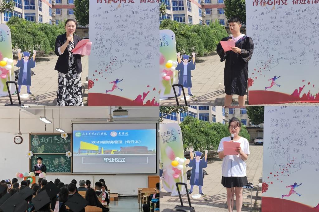 最后,连华用三句话为2023届毕业生送上毕业寄语。她首先要求同学们“穷则独善其身,达则兼济天下”,用修身齐家平天下的豪情,将个人奋斗融入到强国强省强校建设中;其次鼓励同学们用“世界以痛吻我,而我报之以歌”的心态,去克服生活中的磨砺与伤痛,永远积极向上,充满阳光;第三希望同学们秉承山工院人的优秀传统,敢为人先,以“长风破浪会有时,直挂云帆济沧海”的豪情在校友会平台上共同为母校繁荣发展贡献力量。最后她代表学院为大家送上“可口可乐“和”绿色心情“雪糕,祝福大家人生路上常常乐,事业发展步步高!