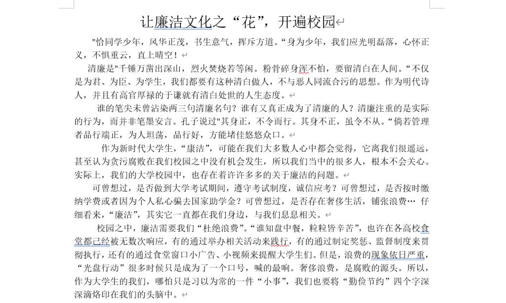 为深入学习贯彻党的二十大精神,全面贯彻习近平新时代中国特色社会主义思想,积极传播廉洁理念,在校园内营造和弘扬崇尚廉洁、抵制腐败的良好风尚,不断强化师生员工的廉洁意识,筑牢拒腐防变的防线,我们特举办此次征文活动。